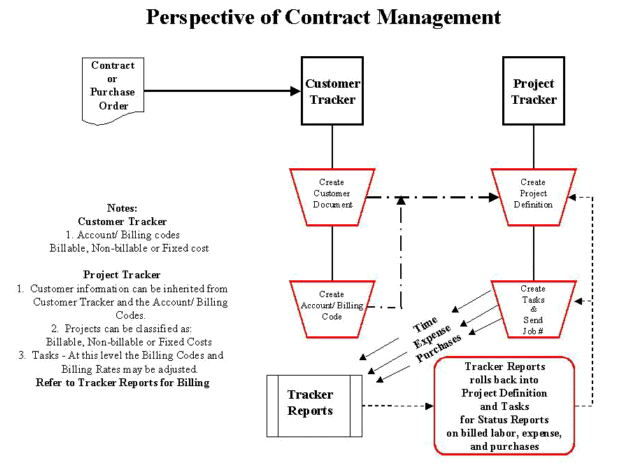 The contract management process follows the workflow outlined below. Select the red areas for screen shots of these key process points.